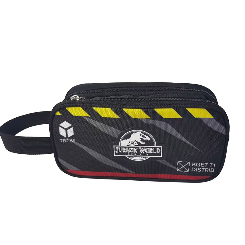 La Cartuchera Juvenil 2 Bolsillos Jurassic World Rebirth KGET T1 te acompaña con un estilo moderno inspirado en criaturas prehistóricas. Está fabricada en material 100% poliéster, con dos bolsillos funcionales que te ofrecen espacio para llevar tus esenciales con facilidad. Las cremalleras y correas de nailon aportan durabilidad al producto. Un artículo 100% original Universal que combina diseño y utilidad para el día a día.