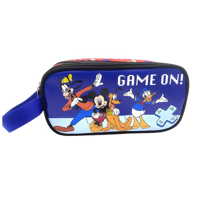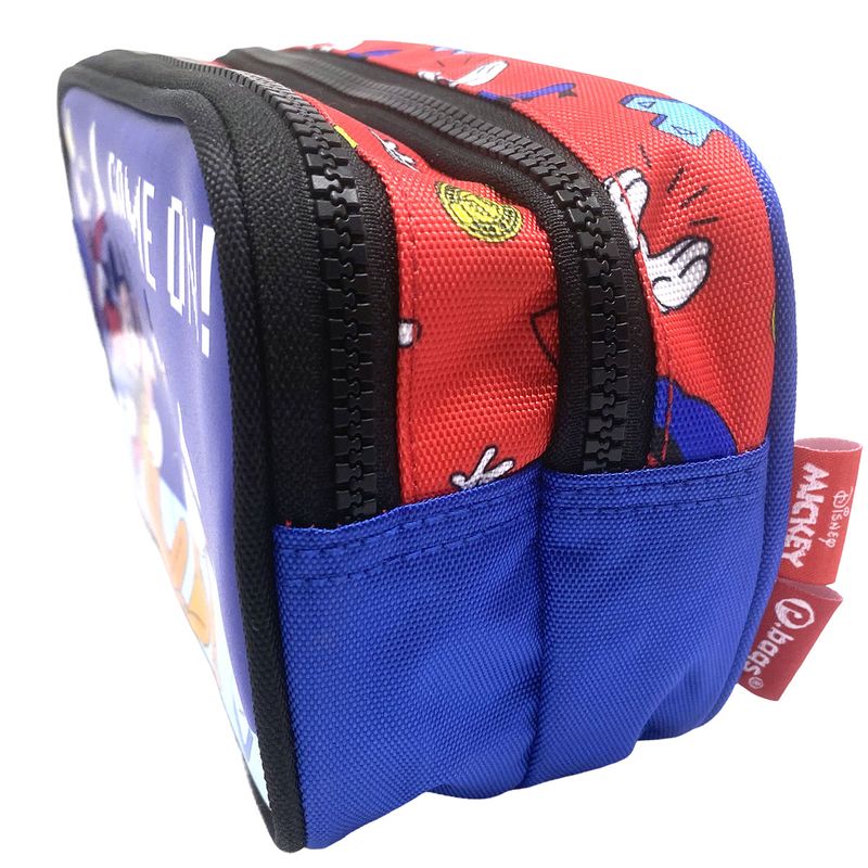Cartuchera Súper 2 Bolsillos Mickey y sus Amigos Game On! es la elección perfecta para organizar todos los útiles con estilo. Este práctico diseño cuenta con dos bolsillos, ideal para guardar todo lo necesario de manera ordenada. Hecha de material 100% poliéster y con un forro interno, garantiza durabilidad y resistencia. La puller metálica y la reata de nylon añaden un toque de sofisticación y funcionalidad al producto.