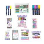 ¿Qué incluye tu arsenal creativo?- Marcadores Punta Pincel (Doble Punta): Versatilidad total con puntas metálicas, pastel y flúor. Perfectos para caligrafía moderna y sombreados.