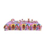 El Combo Línea Fiesta Princesas Moana, Ariel y Rapunzel incluye todo lo necesario para una celebración memorable: un mantel plástico de 106 x 108 cm que transformará tu mesa, 20 servilletas decorativas de 12,5 x 12,5 cm para darle un toque elegante, un letrero de "Feliz Cumpleaños" que hará brillar tu fiesta, 10 vasos resistentes de 9 oz y 10 platos de 7 pulgadas para servir tus deliciosos platillos.