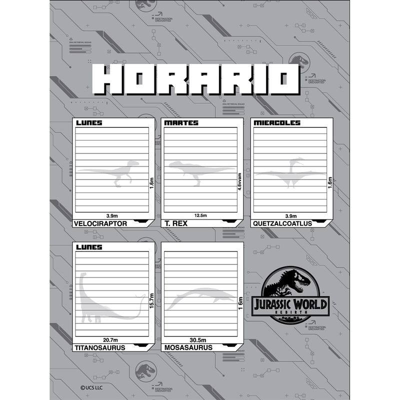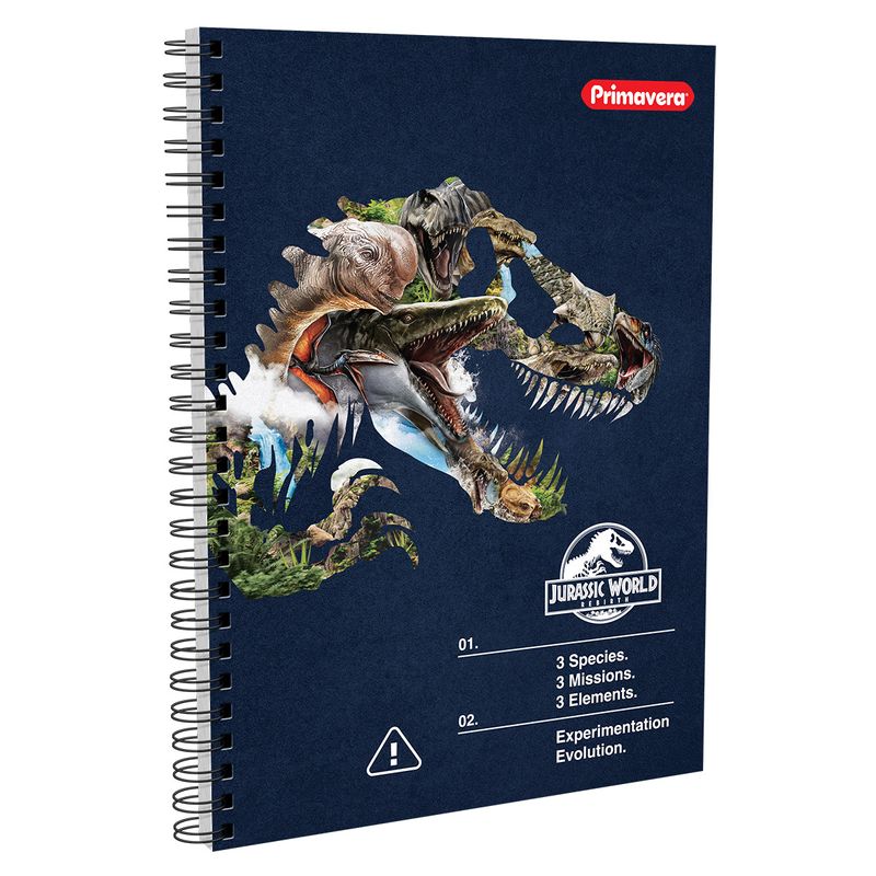 Experimenta la diversidad jurásica con el Cuaderno Argollado Pasta Dura Grande Jurassic World Rebirth 3 Species - 3 Missions - 3 Elements. Una composición visual que presenta tres especies y sus 1 respectivas misiones, ideal para mentes creativas.
