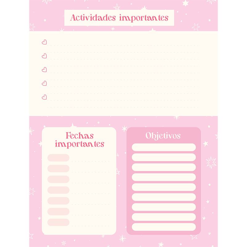 Este cuaderno de 18 x 24 cm está disponible en versiones de 100 y 50 hojas, con hojas cuadriculadas y rayadas para adaptarse a diferentes momentos de creatividad. Su cinta de color en el lomo añade un toque encantador, mientras que sus terminados UV brillante, plastificado mate y alto relieve destacan la delicadeza de su diseño. Cada detalle fue pensado para brindar una sensación especial al usarlo, combinando estilo y calidad.