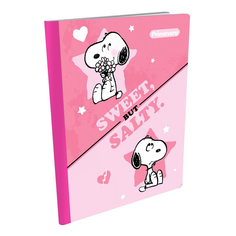 Además, el Cuaderno Cosido Snoopy Sweet, But Salty incluye hojas de marcado, stickers y notas, ideales para personalizar cada página con creatividad. 100% original Peanuts, este cuaderno celebra el espíritu divertido y soñador de Snoopy, brindando un producto lleno de calidad, estilo y la esencia inconfundible de Primavera.