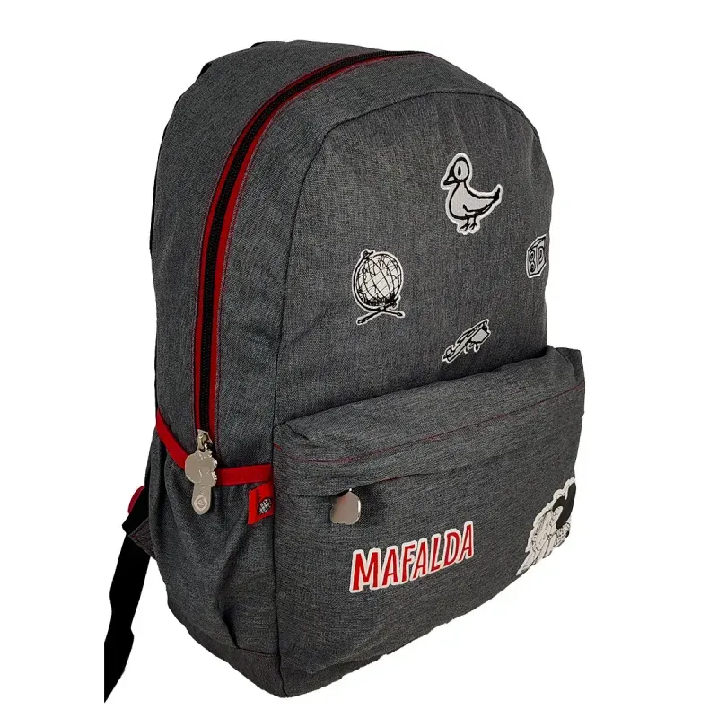 ¿Qué incluye este kit de colección?- Morral Mafalda Juvenil Denim con Parches: Un diseño atemporal en tela denim de alta resistencia. Los parches bordados le dan un toque rebelde y auténtico, perfecto para llevar tus libros o tu laptop con personalidad.