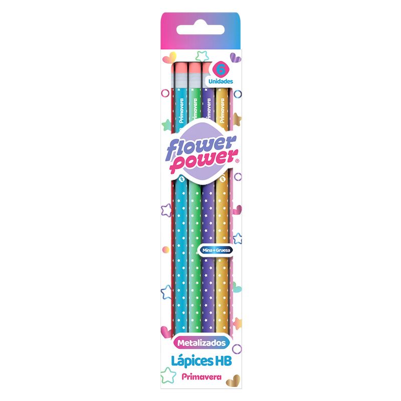 Con el Lápiz Metalizado Flower Power x 6, cada trazo se convierte en una obra de arte. Diseñados con punta más gruesa de 2 mm y calidad HB, estos lápices ofrecen trazos suaves y resistentes que destacan por su acabado metalizado. Perfectos para darle vida y brillo a tus dibujos. Calidad garantizada por Primavera.