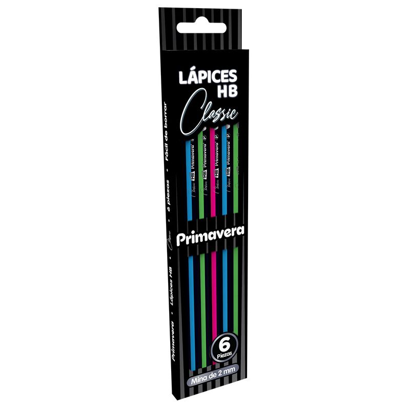 Sorpréndete con la gran calidad, precisión y elegancia del Lápiz de Grafito HB Classic, que se caracteriza por su trazo más suave en color negro intenso, que se obtiene gracias a su mina de 2 milímetros, su cuerpo hexagonal en color negro matte impreso con acentos de colores y su mayor resistencia. Su presentación en caja contiene 6 lápices.