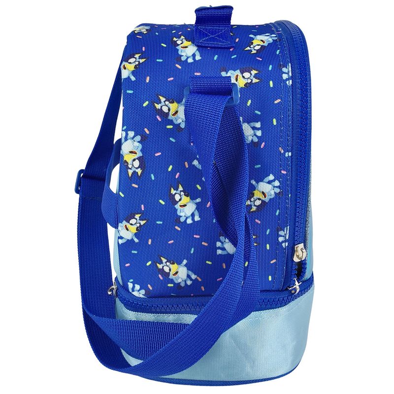 ¡Con el Lonchera Premium Bluey Start The Music!, la hora del almuerzo se convierte en un verdadero espectáculo! Este modelo de dos pisos es perfecto para organizar todo de manera fácil y divertida. Con una impresión PU metalizado que brilla como las mejores aventuras de Bluey, esta lonchera no solo destaca por su estilo, sino también por su funcionalidad. El forro interno impermeable asegura que todo se mantenga fresco y en su lugar, mientras que el marcador en la parte posterior te permitirá personalizarla a tu gusto.