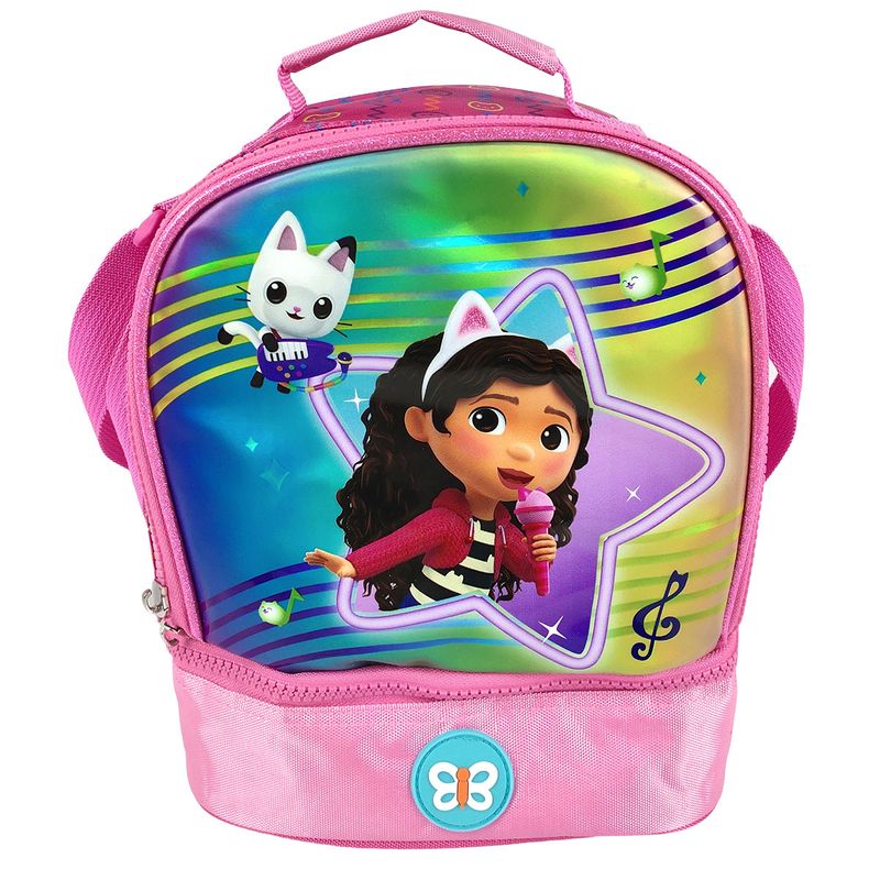 La Lonchera Premium Gabby’S Doll House Sing de Primavera es perfecta para llevar todos los alimentos en dos pisos, con un diseño llamativo y práctico. Su impresión PU metalizado añade un toque brillante, mientras que el forro interno impermeable mantiene todo seco y limpio. Incluye un marcador en la parte posterior y cargaderas en reata para un transporte cómodo y seguro.