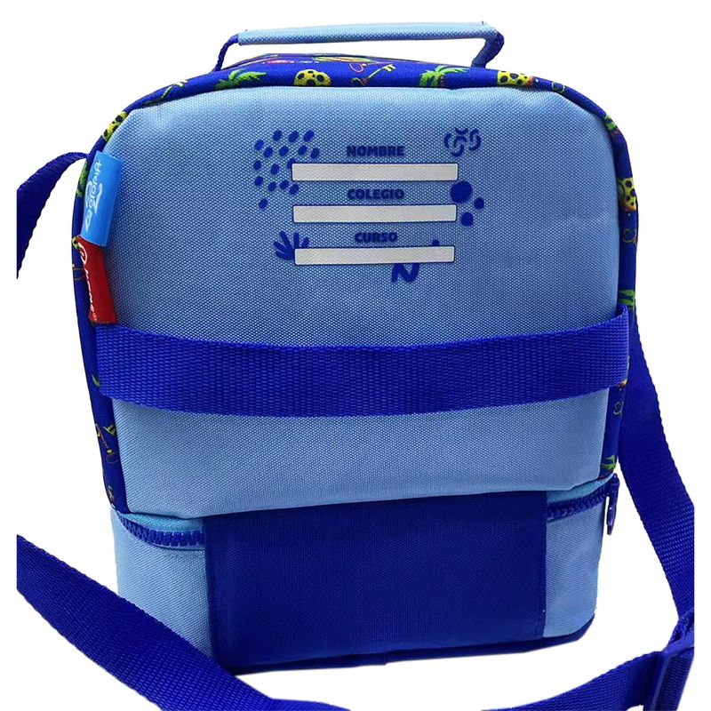 Esta lonchera cuenta con un forro interno 100% PEVA que la hace práctica y segura. Gracias a su aislamiento térmico interno, conserva los alimentos frescos por más tiempo. Incluye un botilito para bebida y un recipiente para alimentos, además de dos compartimentos principales que brindan el espacio ideal para organizar todo de manera cómoda. Su marcador en la parte posterior también es un detalle especial que hace que cada lonchera sea única.