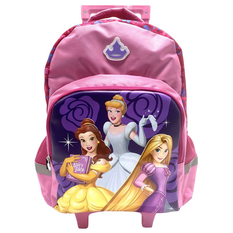 El Morral Premium Con Ruedas Grande Princesas Bella, Cenicienta y Rapunzel es la elección perfecta para quienes desean llevar a sus princesas favoritas a todas partes. Con los personajes principales en relieve y con detalles encantadores, este morral transformará cada día en una aventura mágica. Las cargaderas acolchadas y el sistema de manija expansible hacen que sea fácil y cómodo de transportar, mientras que las ruedas y el soporte en la base permiten que el morral se mantenga erguido y estable.