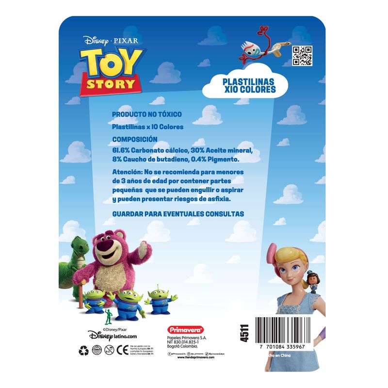 La Plastilina Toy Story Pre-School X 10 es ideal para que los niños desarrollen su creatividad mientras se divierten con sus personajes favoritos. Incluye colores suaves y fáciles de moldear, perfectos para manos pequeñas y uso escolar.