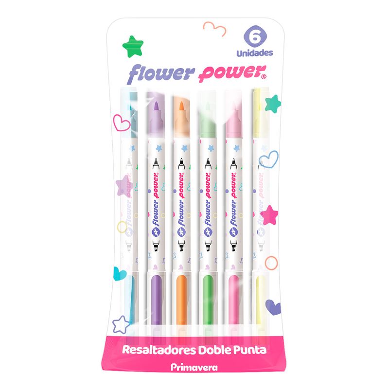 Descubre la alegría de crear con Resaltador Doble Punta Flower Power Pastel X6, una propuesta que llena tus días de color y creatividad, inspirada en Flower Power. Cada trazo refleja la pasión y dedicación de Primavera, acompañándote en cada proyecto con estilo y delicadeza.