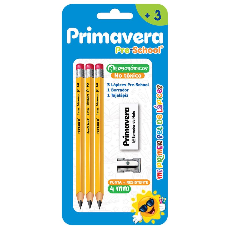 Cada componente del Set 3 Lápices - Borrador - Sacapuntas Pre-School es 100% original de Primavera, garantizando calidad y durabilidad. Si estás listo para llevar tu creatividad al siguiente nivel, este set es la herramienta perfecta. ¡No esperes más y hazlo tuyo hoy mismo!
