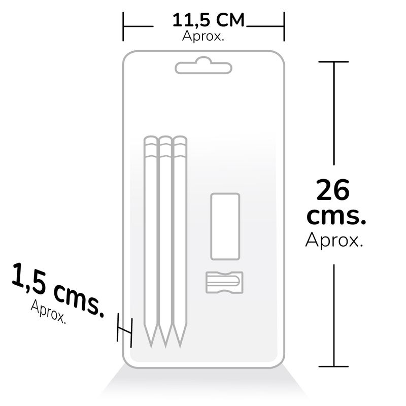 Los lápices del Set 3 Lápices - Borrador - Sacapuntas Pre-School están diseñados para ofrecer una experiencia de escritura cómoda y sin esfuerzo. Con su diseño ergonómico, cada lápiz se adapta perfectamente a tu mano, facilitando el control y la precisión en cada trazo. El borrador incluido es ideal para borrar y corregir sin dejar residuos, mientras que el sacapuntas asegura que tus lápices siempre estén afilados y listos para usar.
