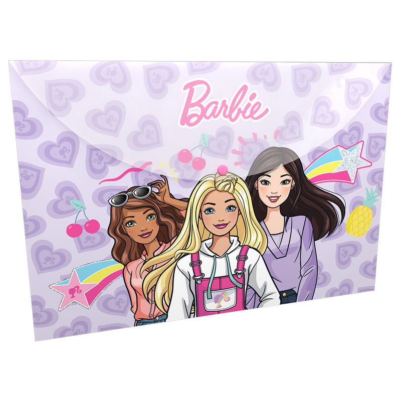 El **Sobre Plástico Barbie Friends Impreso Boton** combina estilo y practicidad en un diseño que destaca por su originalidad. Con un formato de aproximadamente 33 x 24 cm, ofrece el tamaño ideal para mantener organizados y protegidos tus documentos o dibujos favoritos. Cada pieza muestra un encanto único, con ilustraciones coloridas que reflejan la personalidad de la colección, creando un toque especial en cada uso. Su cierre con botón garantiza seguridad y comodidad al abrir y cerrar, mientras conserva un aspecto limpio y elegante.